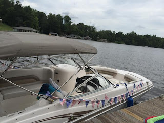 Granny, Grandpa, Marc and Amy came up for the day on the 4th. We traveled over the other side of the lake and watched the boat parade too - quite choppy! Another reason we love our little cove!